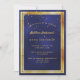 Ett trendig, ett modernt 90:e födelsedagsfest inbjudan-kort för manar. En mörk blått, marin blå bakgrund. Den blå färg är ojämn. Med faux guld ram och golden konetti sprinkle, guldfärgad brev. Mallar för information om party. Bakåt: blå bakgrund med konetti sprinkle.