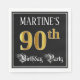 Den här eleganten och den opulenta, pappra napkin-designen med födelsedagstext har ett eget namn och meddelandet "90:e Födelsedagsfest". Det stora talet "90:e" har faux/imitation guld-inspirerad färgämne mönster, ord "Födelsedagsfest" är i ornerad text med skript-stil och bakgrunden är färgad svart som standard (även om den kan anpassas). Finare, lyxiga pappra blöjor av det här slaget kan vara användbara vid en födelsedagsfest/firande som hålls för att hedra någons nittioårsdag. [~Z0000565]