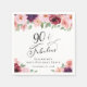 Elegant blöjor för hennes 90:e födelsedagsfest med "90 & Fabulous" i ett kalligrafiskt skript för snyggt och vattenfärgade buketter av burgundröd, rosa och lila blommigt med sage grey.