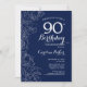 90:e Födelsedagsfest för marin vit Blommigt Inbjudningar