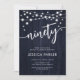 90:e Födelsedagsfest inbjudan. Rustik design med marint vitt trä mönster. Kort i Classy inbjudan med fairy string ljus och vitt skript. Perfekt för en snyggt 190 dagar firande. Anpassa med dina egna detaljer. Kan anpassas för vilken ålder som helst! Skrivna Zazzle-inbjudningar eller digital utskrivbar mall för omedelbar nedladdning.
