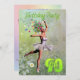 En vacker balerina-blomdans på födelsedagsfest inbjudan. Ballerina bär en vit tutu och har spår av blommor som kommer från hennes hår. Hon dansar genom en fullt daisy.