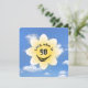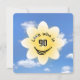 Vit blomgrafik med solstråle, leende och ögonbollar på blå sommarbakgrund himmel under en 90:e födelsedagsfest. All text kan ändras.