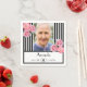Napkin för elegant, klassisk, glamorös och feminin stil under 90:e födelsedagsfest. Klassiskt och chic svep och vitt lodrät rand. Dekorerad med rosa blommor, ponnyer och ro. Mallar för namn, 90 år, födelsedatum och årsdag. Mall för eget foto i lodräts storlek. Girly och elegant!