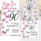 Denna inbjudan till söt och 90:e födelsedag är perfekt för ett trevligt party och kommer att ange en roligt och en högtidlig ton. Den här designen har rosa och lila fjärilar och är ett bra feminininval för ett speciellt evenemang för att fira en milstolpe-födelsedag. Anpassa till ditt eget födelseår och sök efter "90" i min butik för att se hur du samordnar designen.