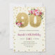 Inbjudningskort för rosa Blommigt och Guld Glitter för 90:e Födelsedagsfest med antalet Glitter