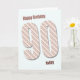 Ett mycket modernt 90:e födelsedagskort. Det här kortet är verkligen fantastiskt. Stora brev i det moderna rand i blå botten. Anpassa för ditt eget unika meddelande.