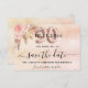En feminin sparar datumet för en 90:e födelsedagsfest. En rosa, ro guld-gradientbakgrund som dekoreras med blommigtar för rosa och pampasgräs. Anpassa och lägg till datum och namn/ålder. Texten: Spara datumet skrivs med ett stort trendig-handskript i stil. Nummer 90 skrivs med ett skript för ballong stil.