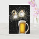 Party-gnistor med guld konetti och en mugg öl för 90:e födelsedag. Den svarta bakgrunden färg kan ändras.