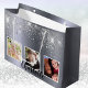 En presentpåse för en girig och glamorös 90:e födelsedag. En metallisk tittar i silver med damm från glitter. Anpassa och lägg till tre foton och en namn. Nummer 90 skrivs med ett stil-teckensnitt med ballong. Perfekt som en festväska eller som en presentväska.