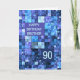90:e födelsedagskort för en bror. Önska grattis på födelsedagen med ett elegant kort. Blåa och lila fyrkanter kombineras för att skapa ett coola-manligt födelsedagskort.
