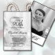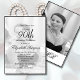 En 90:e Elegant på födelsedagen, personlig monogram på födelsedagen, i svartvitt. Åldern kan ändras för vilken ålder som helst, inte bara för 90 år. Ett foto kan finnas på framsidan och baksidan av den personliga inbjudan. Informationen ändras lätt till din egen anpassningsbar med ord-överraskningen som kan tas bort och den förändrade åldern. Baksidan har den personliga fotobakgrunden med ett personligt monogram som använder samma elegant som inbjudan.