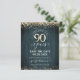 Elegant Faux guld glitter med skuggande konfettsyror på översta sidan och grund gräns. All text är justerbar och lätt att ändra för dina egna behov i party. 90:e födelsedagsmall för Underbar elegant. Faux wood blue texturerad bakgrund gör en perfekt könsneutral partiinbjudan.