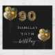 För en elegant 90:e födelsedagsfest. En svart bakgrund, dekorerad med ballonger. Nummer 80 är skriven med trendiget ballong stil, leopard mönster. Anpassa och lägg till ett namn och ett datum. Ord-födelsedagen skrivs med ett modernt handskript i stil med dekorationer.