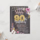 Rustic Wood Birthday-inbjudningskort med Rosa Cotton Blommigt, Guld Glitter-nummer och String Ljus