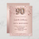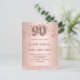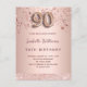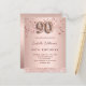 En modern, snyggt och glamorös inbjudan till en 90:e födelsedagsfest. En faux guld-metallisk bakgrund tittar med guld och rosa-stjärnor och ett glitter-band. Namn är skrivet med ett modernt skript för färgaden ro guld i mörk, skrivet med stil. Anpassa och lägg till information om party. Nummer 90 skrivs med ett stil-skript med ballong. Baksida: ro guld, vykortsdesign. Tips! Om du inte vill att det ska se ut som ett vykort klickar du på anpassa, går till baksidan och tar bort delaren och lägger till frimärke.