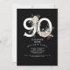 Svarta och vita Rosa ros-Eleganten 90:e Födelsedagsfest inbjudan.