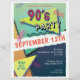90:s Party-flygare med en roligt stil-typografi av "90:s Party". Design omfattar inslag av blyer, orangar och klämmor, gult, rippat kant, geometriskt mönster och former som inspirerats av 90-talet. Innehåller en mall för personlig anpassning.