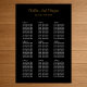90 enkelt sätesdiagram för svart Bröllop Poster