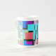 90-talets inspirerade färgstarka geometriska monog benporslin mugg