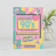 Gå med oss på 90-talet! Inbjudan alla till party i din speciella 90-födelsedagsfest med en 90-temamall för inbjudan. I 90:s inbjudan till temafödelsedagar finns en regnbåge av färg med kassettband, diskett och en vänskap armband på en modern stil-inbjudan.
