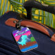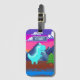 90s Pixel Gamer Pixelated- Dinosaur Illustration Single-sided w/ Card Slot Luggage Tag; This funny nostalgic design features pixel art of a Dinosaur in nature. There is mountains, fir trees, and clouds in colorful sky. In front pixelated font "START" for beginning of the game, I've used a pop color palette, to give the art a 90s Video Games Aesthetic.