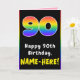 90th Birthday: Colorful Rainbow # 90, Custom Name Kort