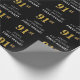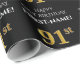 Denna lyxiga och elegant födelsedagskalemetterade pappra utformning innehåller meddelandet "LYCKLIG 91:a BIRTHDAY,", ett redigerbart namn, och födelsedagsnumret "91:a" med guld inspirerat utseende mönster. Bakgrunden är svart på färgad. Papper som denna kan användas när man slår in presenter/gåvor som ges för att fira någons 91-årsdag. [~Z0000454]