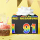 Den här roliga, färgstarka och roligt-födelsedagstexten som omsluter den pappra utformningen har ett stort nummer "91" och meddelandet "GRATTIS PÅ FÖDELSEDAGEN", som båda har en regnbågsspektrumövertoning som inspirerar mönster, tillsammans med en fetstilt gult som kan redigeras av namn. Bakgrunden är svart på färgad. Roligt som är papper som denna kan användas när en gåva eller present är ge för att hedra någons 91:a födelsedag. [~Z0000475]