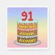 Den här roligten och den glatta födelsedagskalematoden för papper napkin har en tecknad-stil-bild av en treskiktad födelsedagskalas med numeriskt formade ljus ovanpå som visar nummer "91", tillsammans med meddelandet "LYCKLIG 91ST BIRTHDAY", och en personlig-mottagare namn. Bakgrunden har en gradient mönster som är inspirerad av skalan för pastellregnbåge med flera färg. Sådana här pappra servetter kan användas när man är värd för ett party för någon i firande på 91:a årsdagen. [~Z0000623]
