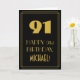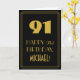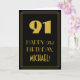 Denna tjugonde roamingera inspirerad och prickkortsdesignen för vintage/återutseende ger ett stort konsthugge-utseende inspirerat nummer "91", meddelandet "LYCKLIG 91:a BIRTHDAY", ett redigerbart namn och ett gräns mönster som består av tunt linjer på framsidan. Bakgrunden till framsidan är svart färgad. Insidan har ett redigerbart hälsning-födelsedagsmeddelande, eller så kan det kanske rensas och lämnas tomt om ett meddelande ska skrivas för hand i stället. Ett anpassat födelsedag som detta kan vara ett roligt sätt att ge födelsedagseftergifter till någon som firar sin nittioförsta födelsedag. [~Z0000499]