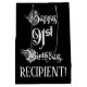 Den här lavala och ornerade födelsedagskalemaskin för presentsäckar innehåller meddelandet "Lycklig 91:a födelsedag" i finare-skriptet stil, på en svart färgad. Den har också en personlig som tar emot namn. En dylik presentpåse på födelsedagen kan användas när en gåva eller present i firande på någons 91-årsdag är ge. [~Z0000557]