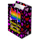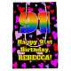 Den här roligten och den roliga presentsäcksdesignen med födelsedagstext har ett stort nummer "91" med en regnbågsspektrumövertoning som inspirerade mönster. Det innehåller också meddelandet "Lycklig 91:a födelsedag" och ett eget namn. Bakgrunden har en mönster av lila-, rött- och rosa hjärtformer. En dyster julklapp som den här kan vara ett roligt sätt att slå ihop en gåva eller present som ges för att fira någons 91-årsdag. [~Z0000551]