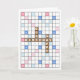 91:a födelsedagskortet för någon som kärlek ska spela spel i ord. I brev står det "Lycklig 91:a födelsedag åt dig". Bakgrunden till bild är ett ord-spelbord.