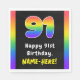 Den pappra napkin-designen med ett stort nummer "91" med ett dynamiskt regnbågsspektrum som inspirerat mönster, tillsammans med meddelandet "Lycklig 91:a födelsedagen" och anpassningsbarnas mottagare namn. Pappra servetter som dessa kan användas när man firar någons 91-årsdag. [~Z0000629]