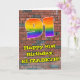 Den här roligten och den spännande gatukonsten och graffiti-hälsningskortet med födelsedag har ett stort nummer "91" med en färgstark regnbågsspektrumövertoning som inspirerade mönster, tillsammans med meddelandet "Lycklig 91:a födelsedagen" och ett redigerbart namn. Bakgrunden till framsidan har en tegelvägg mönster. Insidan innehåller ett hälsning-meddelande från anpassningsbarnas födelsedag, eller kan kanske tas bort och lämnas tomt om ett meddelande ska skrivas för hand i stället. Ett sjudande födelsekort som det här kan skickas för att fira någons nittioförsta födelsedag. [~Z0000586]