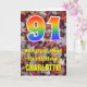 Framsidan av denna färgstarka, hösttematiska och naturinspirerade födelsedagskalenderdesign har ett stort nummer "91" med en regnbågsspektrumövertoning som inspirerade mönster. Det innehåller också budskapet "Lycklig 91:a födelsedag" och ett anpassade namn. Bakgrunden till kortets framsida har en kraftig nedgång i höst löv mönster. Insidan innehåller ett hälsning-meddelande från anpassningsbarnas födelsedag, eller kan kanske tas bort och lämnas tomt om ett meddelande ska skrivas för hand i stället. Ett sådant här födelsedagskort i anpassningsbarna kan vara ett roligt sätt att skicka önskemål till någon som firar sin nittioårsdag. [~Z0000384]