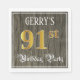 Den här pappra napkin-designen för finare och den opulenta födelsedagen har en personlig namn och meddelandet "91:a Födelsedagsfesten". Det stora antalet "91st" har faux/imitation guld-inspirerad färgämne mönster, och ord "Födelsedagsfest" finns i ornerad text med skript-stil. Bakgrunden är en imitation/faux woodgrain-inspirerad mönster. Elegant, lyxiga pappra blöjor som denna kan användas vid en födelsedagsfest som hålls för att hedra någons nittio första födelsedag. [~Z0000566]