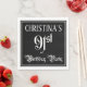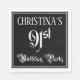 Den här pappra napkin-designen för finare och elegant har ett anpassade namn och meddelandet "91:a Födelsedagsfesten". Det stora talet "91st" och ord "Födelsedagsfest" står i lyxig text med skript-stil och bakgrunden är färgad svart som standard (även om den kan anpassas). Det kan vara bra att ha lyxartade pappra blöjor av det här slaget vid en födelsedagsfest/firande som hålls i firande på någons nittioårsdag. [~Z0000563]