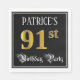 Den här pappra napkin-designen i finare och den opulenta födelsedagskalematoden har ett anpassade namn och meddelandet "91:a Födelsedagsfesten". Det stora talet "91st" har faux/imitation guld-inspirerad färgning mönster, ord "Födelsedagsfest" är i lyxig text som heter stil och bakgrunden är färgad svart som standard (även om den kan anpassas). Elegant, lyxiga pappra blöjor som denna kan vara användbara om man firar en födelsedag för att fira någons nittioårsdag. [~Z0000565]