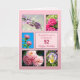 92:a födelsedagskort. Skicka vackra blommor till en vacker person. Ett födelsedagskort med vackra känslor. En samling bilder av blommor med rammage på rosa bakgrund.