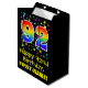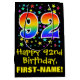Denna pulserande, spännande och färgstarka födelsedagspressformgivning har ett stort nummer "92" med en regnbågsspektrumövertoning stil mönster, tillsammans med meddelandet "Lycklig 92:a födelsedag" och en redigerbar mottagare namn. Den har också en färgstark bakgrund i mönster med stjärnformer av olika storlek. En dylik presentpåse på födelsedagen kan vara ett roligt sätt att slå ihop en gåva eller present som ges till någon som firar sin 92-årsdag. [~Z0000510]