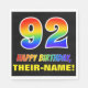 Den här roligten, som är färgstark och rolig, har den pappra napkin-designen ett stort nummer "92" och meddelandet "GRATTIS PÅ FÖDELSEDAGEN", båda färgader med en regnbågsspektrumövertoning som inspirerade mönster, tillsammans med en fet anpassningsbar-mottagare i gult namn. Bakgrunden är svart på färgad. Roligt, skräddarsydda pappra servetter som detta kan användas vid en födelsedagsfest som hålls för att fira någons 92-årsdag. [~Z0000476]
