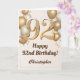 92:a födelsedag Guld och födelsedagsdagen Kort
