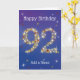 92:a födelsedagen - 92:a stjärnor - blå - Ålder 92 Kort