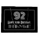 Vintagen stil 1920-1930-talet inspirerade presentsäckens födelsedagskalenliga utformning med ett stort konsthugge-utseende inspirerat nummer 92, Lycklig 92:a födelsedagen, ett redigerbart namn och ett gräns mönster som består av tunt linjer. Den har också en bakgrund med svart färgad. En dylik presentpåse på födelsedagen kan användas när man ge en gåva eller present i firande på någons 92-årsdag. [~Z0000497]