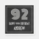 Den här vintagens födelsedag med den pappra napkin-designen har ett stort Art Deco stil inspirerat nummer "92", meddelandet "LYCKLIG 92:a BIRTHDAY,", ett eget namn och ett gräns mönster som består av linjer. Roligt, anpassad födelsedagstext för pappra blöjor som detta kan användas vid någons 90-årsfirande. [~Z0000395]
