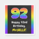 Denna spännande och djärva pappra napkin-design på födelsedagen har nummer 92 med ett färgstarkt regnbågsspektrum som inspirerar gradienten mönster, tillsammans med meddelandet "Lycklig 92:a födelsedagen" och en redigerbar mottagare namn. Sådana pappra servetter som öga kan användas när man tar emot en födelsedagsfest till någon i firande på 92-årsdagen. [~Z0000629]