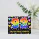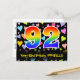 Framsidan av denna kärleksfulla, roliga och färgglada födelsedagskortdesign har en stor siffra "92" med ett regnbågsspektrum-gradering-mönster. Den har också meddelandet "Happy 92nd Birthday," och ett personligt mottagarnamn. Framsidan har dessutom ett livfullt och färgglatt bakgrundsmönster med kärleksfulla hjärtformer i olika storlekar. Baksidan har ett redigerbart födelsedagsgratulationsmeddelande, eller kan kanske rensas och lämnas tomt om ett meddelande ska skrivas för hand istället. Ett anpassningsbart födelsedagskort som detta kan vara ett roligt sätt att skicka ett meddelande för att fira någon som fyller 92 år. Postkort som detta kan också användas för att bjuda in gäster till en födelsedagsfest som