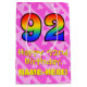 Den här uppgången, älskande och roligtens matade presentsäcksdesignen har ett stort nummer "92" med en regnbågsspektrumövertoning som inspirerade mönster, tillsammans med meddelandet "Lycklig 92:a födelsedagen" och en personlig mottagare namn. Det har också en glad bakgrund med hjärthyvlar av rosa-färgad i mönster i rand. En lycklig-presentpåse som denna kan användas när man slår in gåvor som ges till någon i firande på 90 år. [~Z0000511]